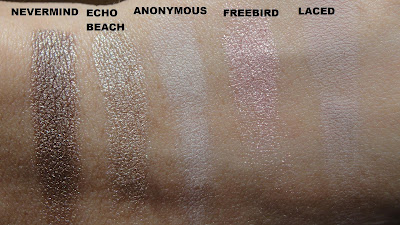 L'ultima fila, composta da marroncini e neutri è quella che mi piace meno. Sicuramente utile per punti luce e trucchi nude, ma non la amo particolarmente ed i due che scarto a gusto personale sono Anonymous e Laced